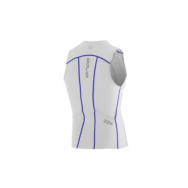 The 226 Tri Tank has been engineered with Orca's Vapour-Cool fabric, which uses nanocrystals embedded in the fibre to naturally conduct heat away from the body, keeping you cool. Used across the entire front and lower back of the Tri Tank the cross-section yarn construction enhances moisture wicking and dries quickly. This highly breathable fabric also contains silver ions that are antibacterial and deodorizing, and anti-allergy, making it ideal for longer distance racing and use in hot conditions. Orca's Tri-Enduro mesh fabric is on the back of the tank for breathability and wicking with UPF50+ KillaSkn Kompress down the middle of the back for extra sun protection. The tank has a longer cut at the back for increased coverage when cycling and running. Key features for endurance distance racing include the angled rear pockets, reflective logos for visibility in low light conditions, and a 3-coil front control zip for increased ventilation when required with zip-top cover to guard against irritation.